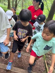 自然も多く、周囲の動植物を観察して楽んだりや山の中を探索したり散歩を楽しみました。暑い中、熱中症を気にするあまりなかなか外出も難しいですが・・・こんなに涼しい場所があり外で解放感に満ちて楽しんだこども達は、大喜びでした\(^o^)/今後も機会を見つけて様々な場所に外出し楽しんでいきたいと思います(*^-^*)