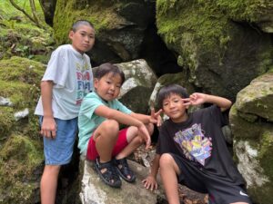 厳しい暑さが続いていますが、教室では暑さに負けないくらいこども達の元気な声が響いています(^^)先日、涼を求めて東温市にある上林森林公園の風穴に行ってきました(^-^)
