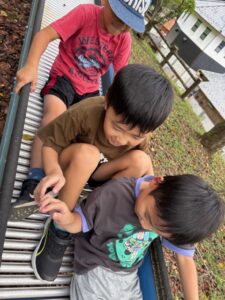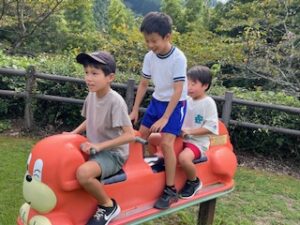 公園では友達や先生と一緒に遊具や虫捕り、芝滑りを楽しみました☆