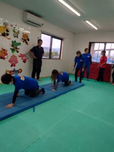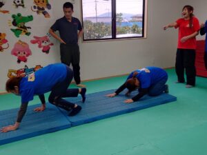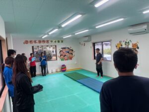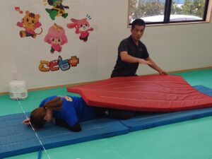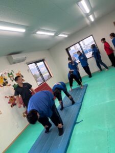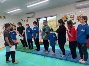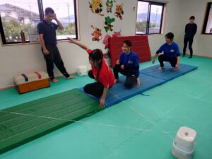 先日、松山教室と松前教室と合同で運動療育プログラムの職員研修を行いました。