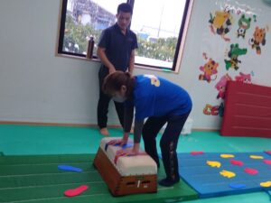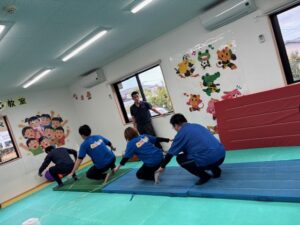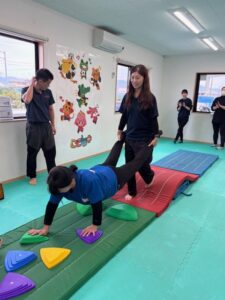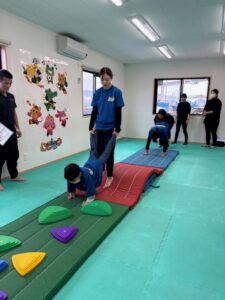 こどもプラスでは、職員全員が定期的に本部の講師の方からうんどう療育研修を受けています。