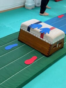 マーカーを置いて跳び箱の補助の方法を学びました(*^-^*)