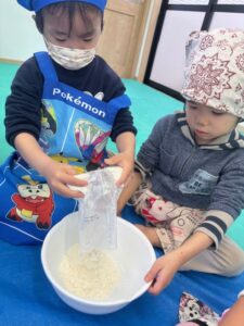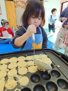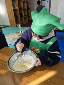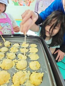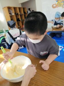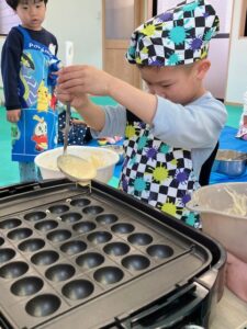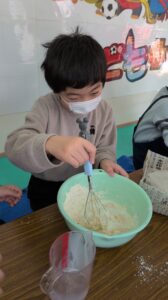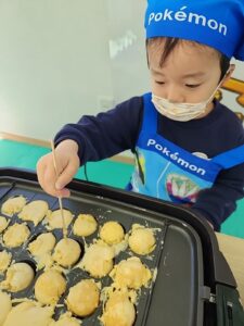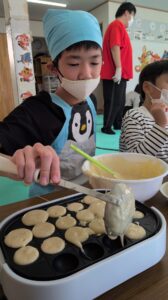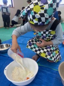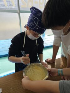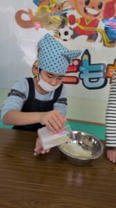 真剣にクッキングに取り組むこども達。「次は何入れるの?」「やってみたい!」とやる気に満ちた声がたくさん聞こえてきました(^O^)