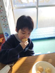 いつもより沢山食べる姿が見られ♪みんなで作ったベビーカステラは、とっても美味しかったようです(#^.^#)
