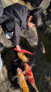 餌を見せるとたくさんの鯉が寄って来たね(*^^)v