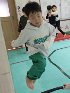 次は棒ジャンプ!それっ‼